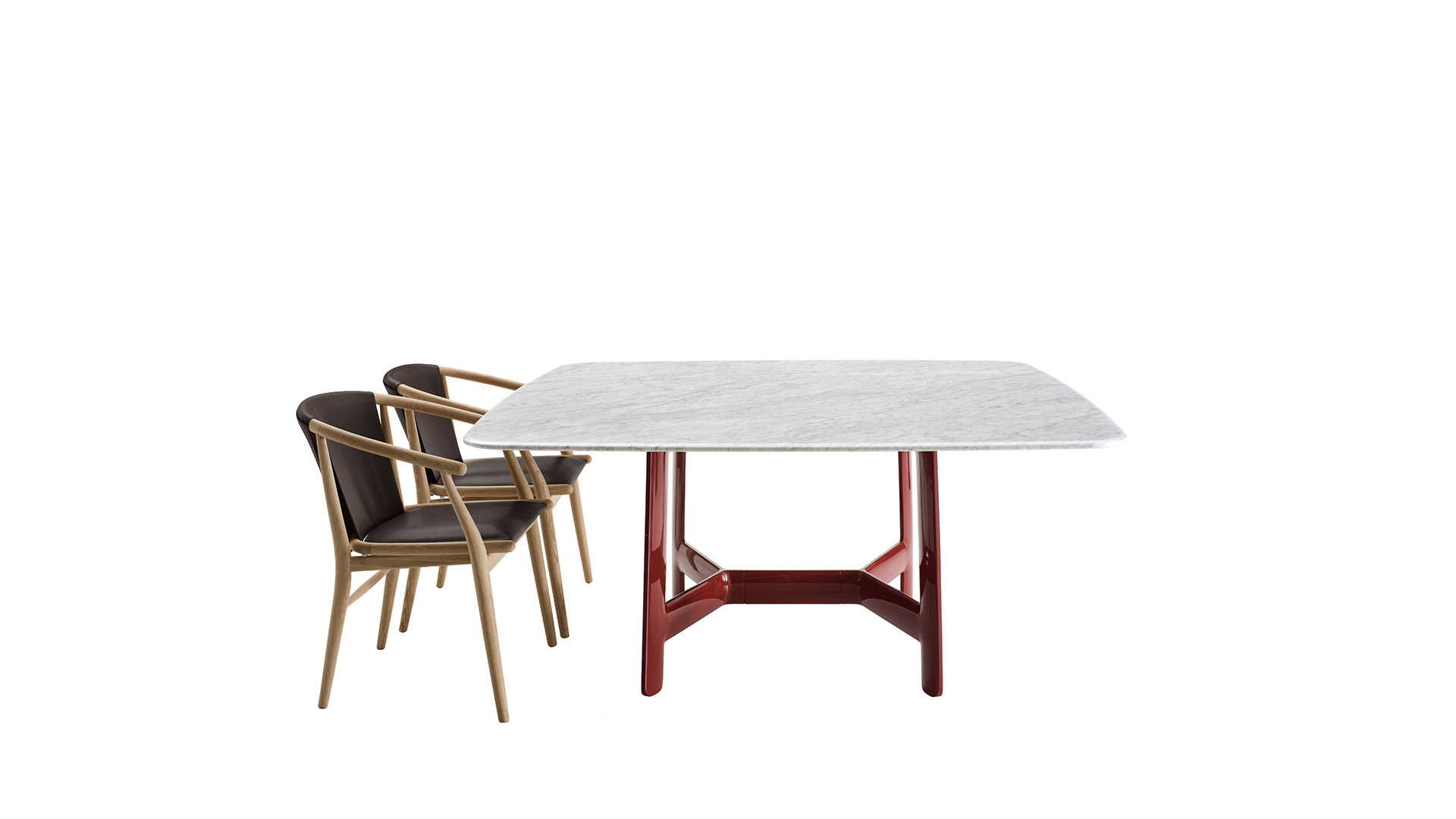 Alex es una serie de mesas en varios tamaños, caracterizada por el marcado diseño de sus estructuras de sección, con formas lenticulares grandes. Está disponible en tres geometrías y diferentes medidas: rectangular en tres longitudes, redonda y cuadrada.