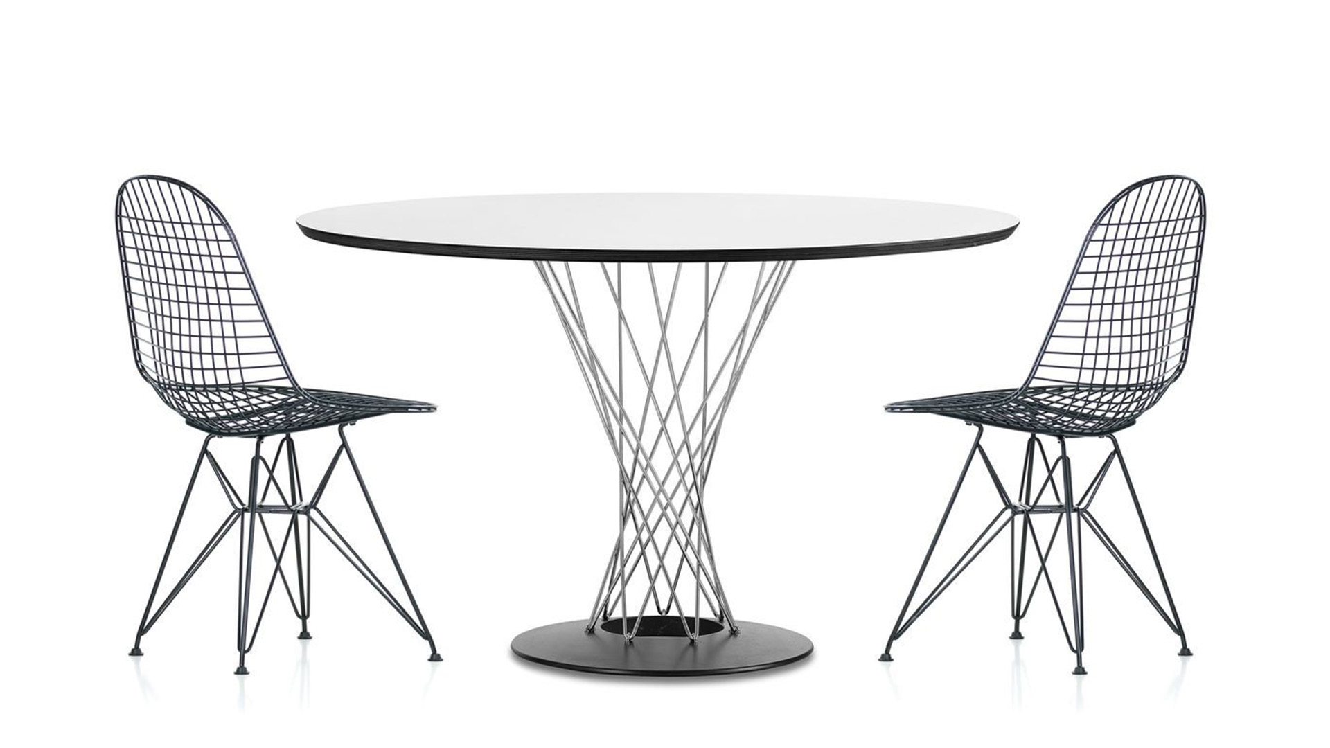 La Dining Table de Isamu Noguchi es una de las mesas de comedor más elegantes en la historia del diseño de mobiliario del siglo XX. Sus varillas cromadas se conectan a un aro de base en hierro fundido para aportar mayor estabilidad y soporte a la mesa del escultor-diseñador, sin que se perciba pesada. La Dining Table está disponible con tableros en dos tamaños.