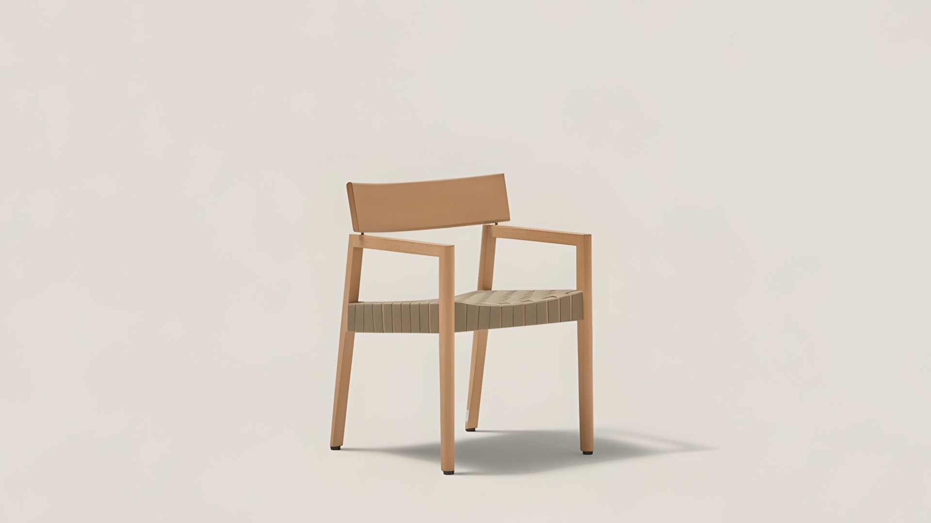 Fabricada en TechTeak®, cuenta con un asiento plano de poliéster de 4 cm de ancho que ofrece estabilidad y resistencia para uso en exteriores, además de un respaldo ergonómico que favorece una postura cómoda. Opcionalmente, se puede añadir un cojín de asiento de tejido acrílico 100% teñido en masa para mayor comodidad sin alterar su funcionalidad.