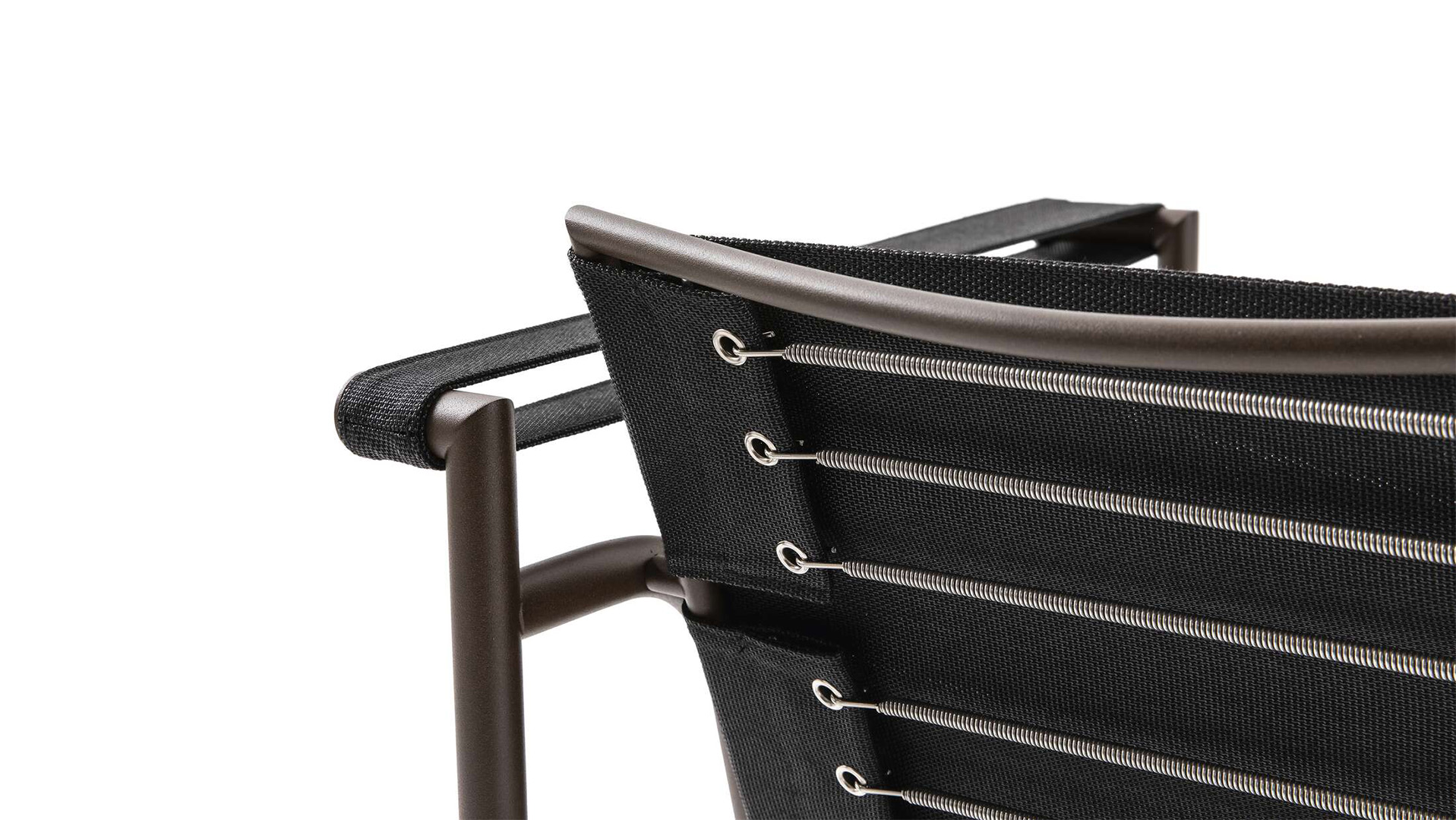 Una butaquita con un diseño imperecedero, inspirada en muebles coloniales. Ligera y compacta, la forma atemporal de Fauteuil dossier basculant se presentó en 1929 en el Salon d'Automne junto con otros modelos icónicos como el Fauteuil Grand Confort, la Table tube d'avion y la Chaise longue.