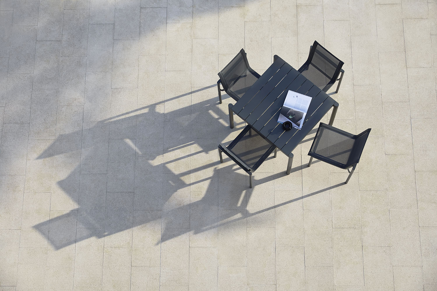 La silla Origin encarna la esencia de la simplicidad y la atemporalidad. Su estructura de aluminio con recubrimiento en polvo sostiene un asiento y respaldo de Batyline termosellados que brindan ligereza y comodidad. Apilable y versátil, esta pieza refleja la filosofía de la colección: líneas sutiles y un diseño funcional que se adapta a cualquier proyecto de exterior.