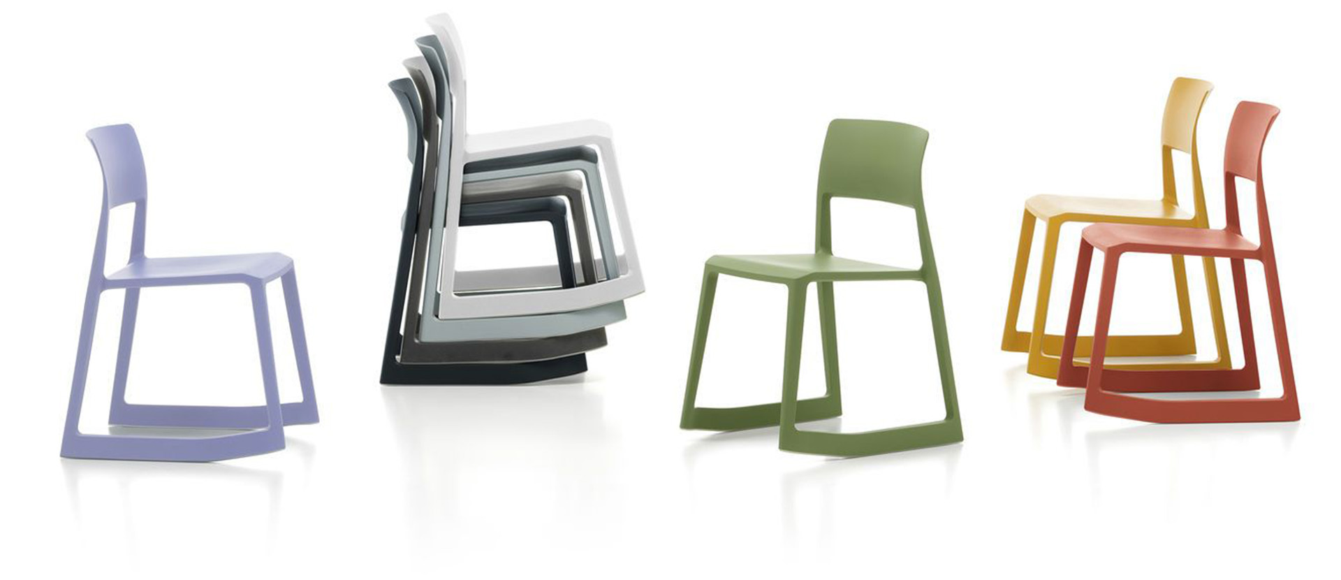 Tip Ton RE es una silla de plástico que puede inclinarse hacia delante hecha de material reciclado procedente de residuos posconsumo. El nombre Tip Ton hace referencia a las dos posiciones de asiento características de la silla: partiendo de una posición normal, Tip Ton RE puede inclinarse unos grados hacia delante. Esta posición inclinada ayuda a mantener erguidas la pelvis y la columna vertebral, mejorando así la circulación en los músculos del abdomen y la espalda.