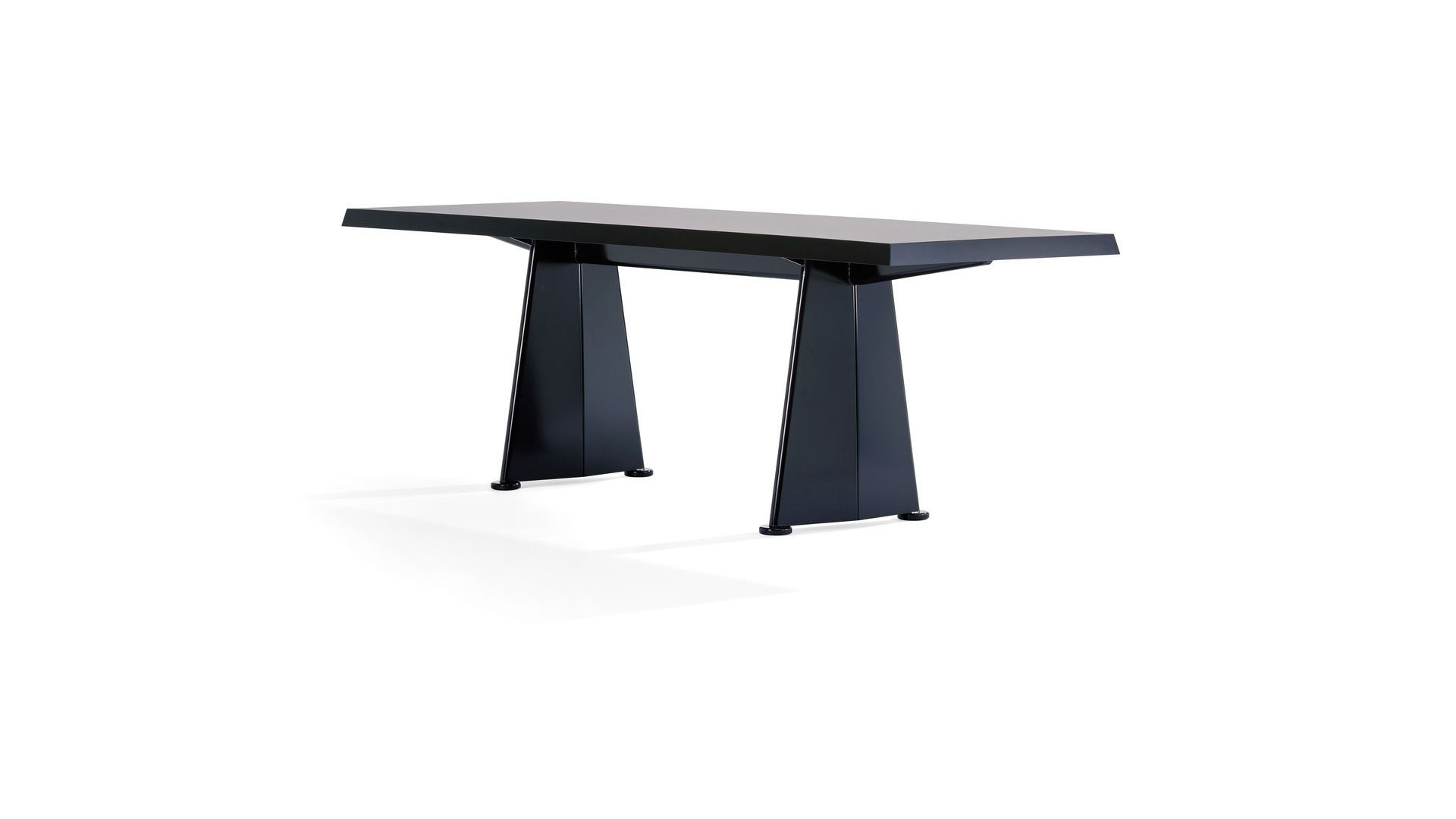 Jean Prouvé diseñó originalmente la mesa Trapèze para la Cité Universitaire de Antony, cerca de París. La forma trapezoidal de las patas de chapa de acero inspiró su nombre y también le da a la mesa su carácter distintivo.